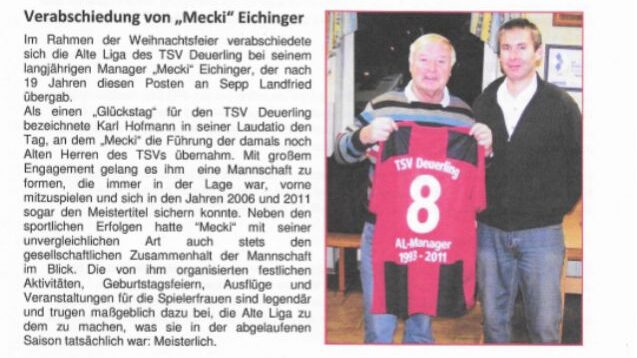 Nach 19 Jahren als Teammanager und Trainer verabschiedete sich Johann „Mecki“ Eichinger aus dem aktiven Fußballgeschehen.