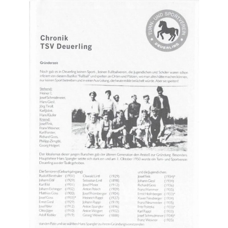 Aus Idealismus und dank engagierter Deuerlinger Jugendlicher, die den Fußball liebten und lebten, entstand der Anstoß zur Gründung unseres Sportvereins.