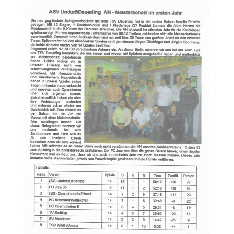 Gemeinsam mit dem ASV Undorf wurde eine Spielgemeinschaft gegründet.